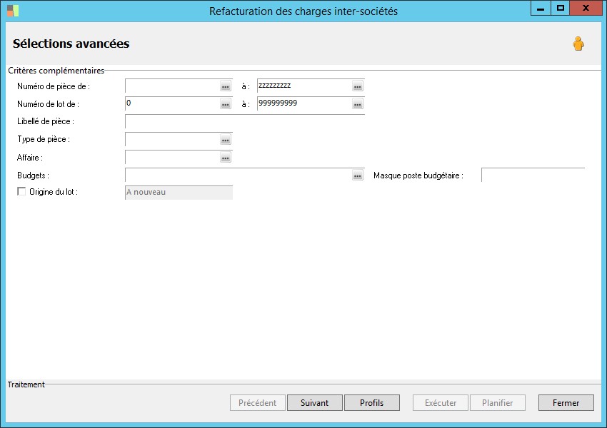 Ce champ permet d'indiquer le type de lot dans lequel seront générées les pièces de refacturation. |