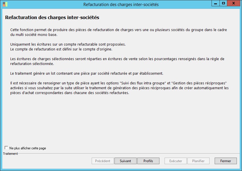 (Sage FRP 1000 Suite Financière) Menu Comptabilité > Générale > Refacturation des charges inter-sociétés