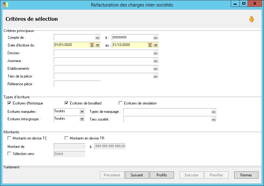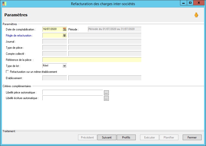 Il s'agit de la date à laquelle doivent être générées les écritures, les pièces et le lot de refacturation. |