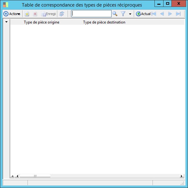 (Sage FRP 1000 Suite Financière) Menu Comptabilité Groupe > Générale > Gestion des pièces réciproques > Table de correspondance des types de pièces réciproques