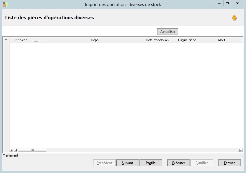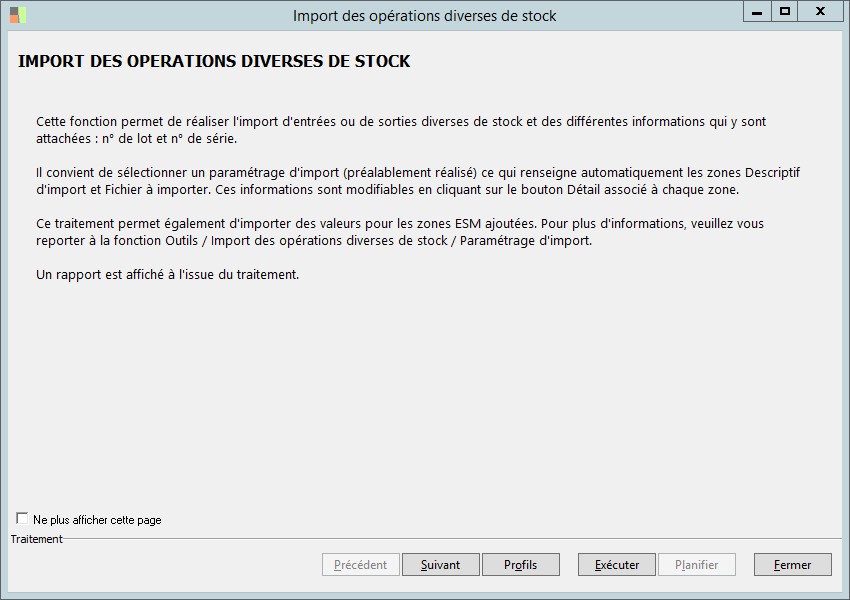 (Sage FRP 1000 Suite Financière) Menu Processus Opérationnels > Initialisation > Import de pièces de stock > Import des opérations diverses de stock