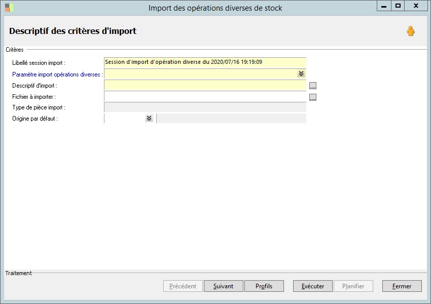 Paramètre import opérations diverses : |