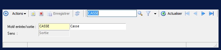 (Sage FRP 1000 Suite Financière) Menu Processus Opérationnels > Paramètres > Pièces commerciales > Motif d'entrée/sortie diverse