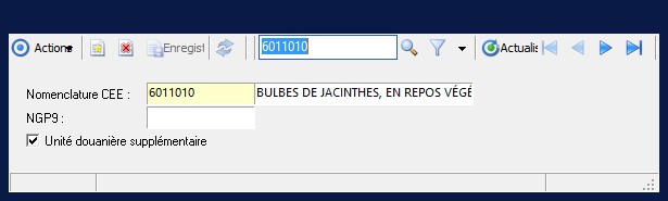 La nomenclature utilisée dans les échanges intracommunautaires est la nomenclature combinée (NC) à 8 chiffres commune aux Etats membres de l'Union européenne. Les 6 premiers caractères sont ceux du système harmonisé, les deux derniers caractères répondent aux besoins propres de l'Union européenne. Cette nomenclature est fixée par les Etats membres et mise à jour régulièrement.La nomenclature CEE est paramétrable au niveau de la fiche produit et est reprise automatiquement sur les lignes d'information de la déclaration d'échanges de biens. |