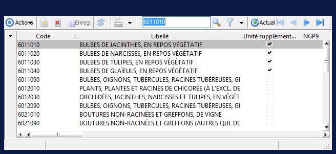 Pour certains produits, la nomenclature utilisée dans les échanges intracommunautaires comprend, en sus des 8 chiffres de la Nomenclature Combinée, un caractère statistique national placé en neuvième position, le code NGP (Nomenclature Général des Produits). |