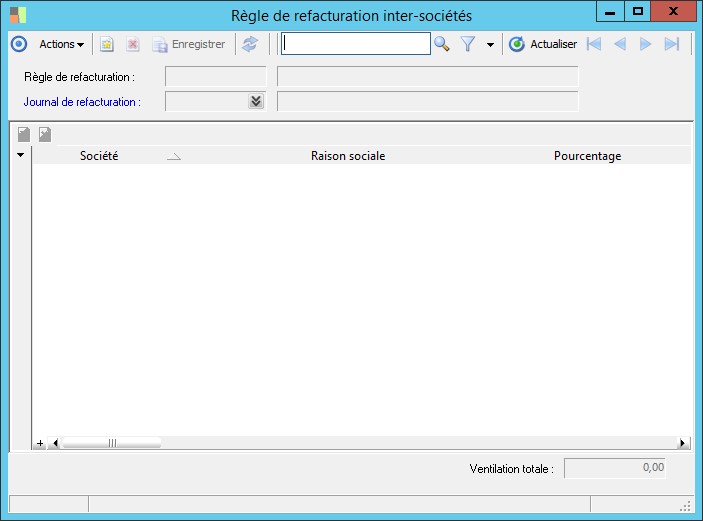 (Sage FRP 1000 Suite Financière) Menu Comptabilité > Paramètres > Comptabilité générale > Règle de refacturation inter-sociétés