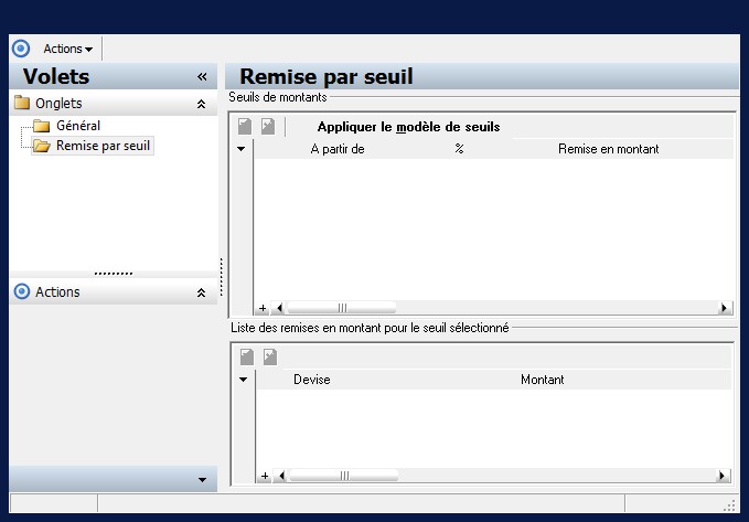 Il est également possible de sélectionner un modèle de seuil qui définira les divers seuils sur lesquels s'appliqueront les remises.