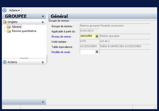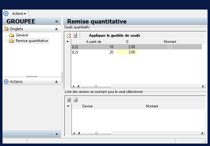 Il est également possible de sélectionner un modèle de seuil qui définira les divers seuils sur lesquels s'appliqueront les remises.
