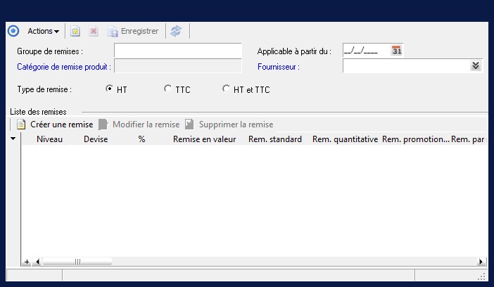 Une remise est obligatoirement rattaché à un niveau de remise afin de connaitre son ordre d'application. |