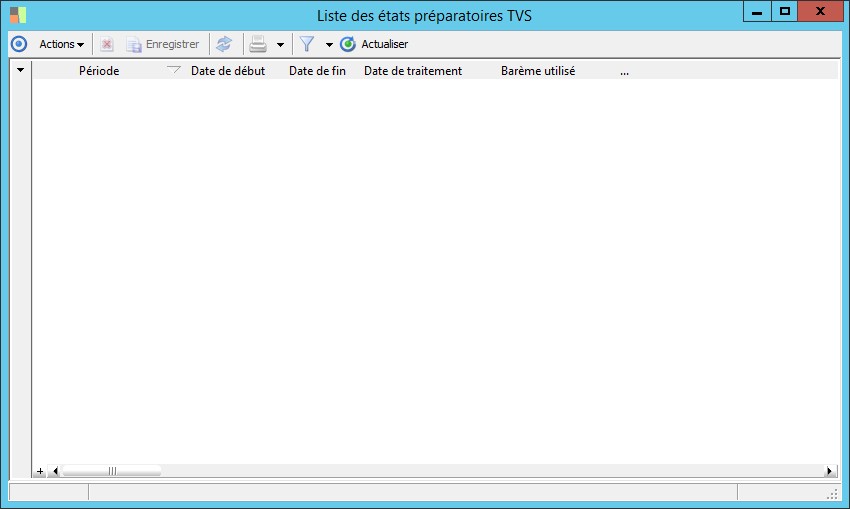 (Sage FRP 1000 Suite Financière) Menu Immobilisations > Véhicules > Liste des états préparatoires TVS