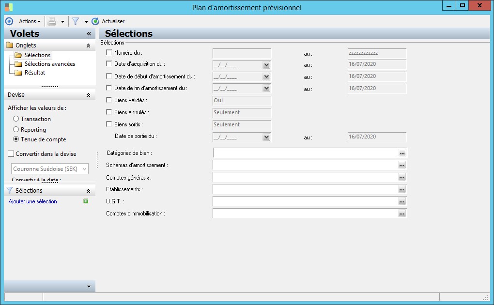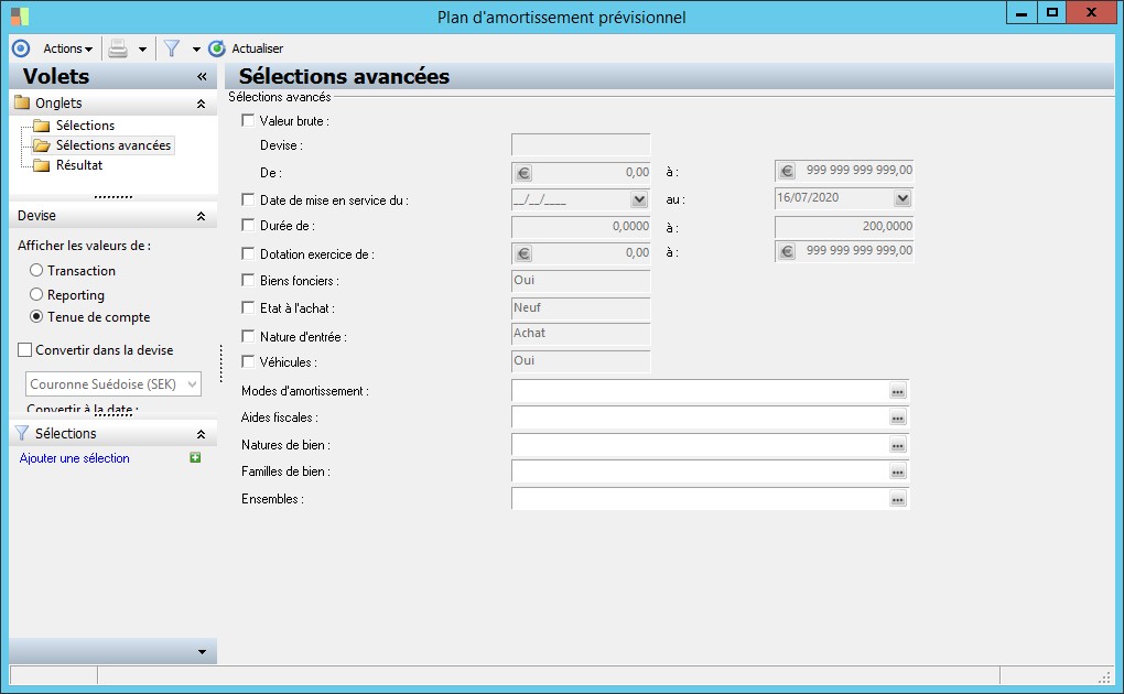 Ce paramètre permet de faire une sélection par date de fin d'amortissement (si la case est cochée). |