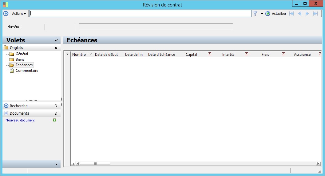 Cette zone permet de renseigner le montant du capital, pour un contrat en location financement ou du loyer pour un contrat en location devant figurer sur les échéances du bien. |