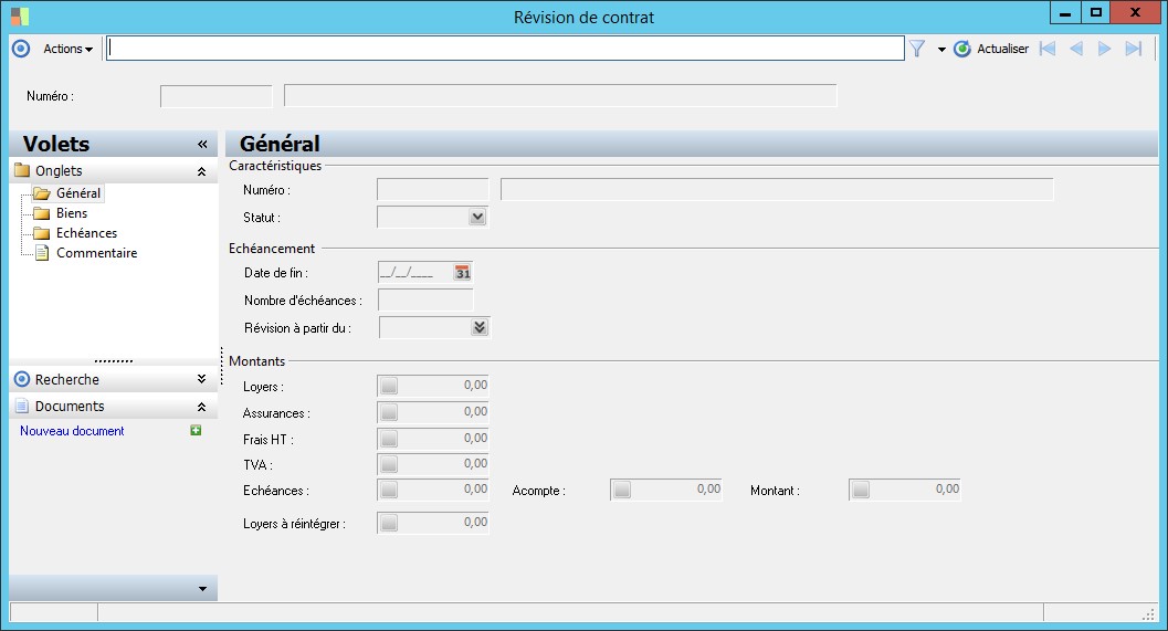 (Sage FRP 1000 Suite Financière) Menu Immobilisations > Contrats > Révision de contrat