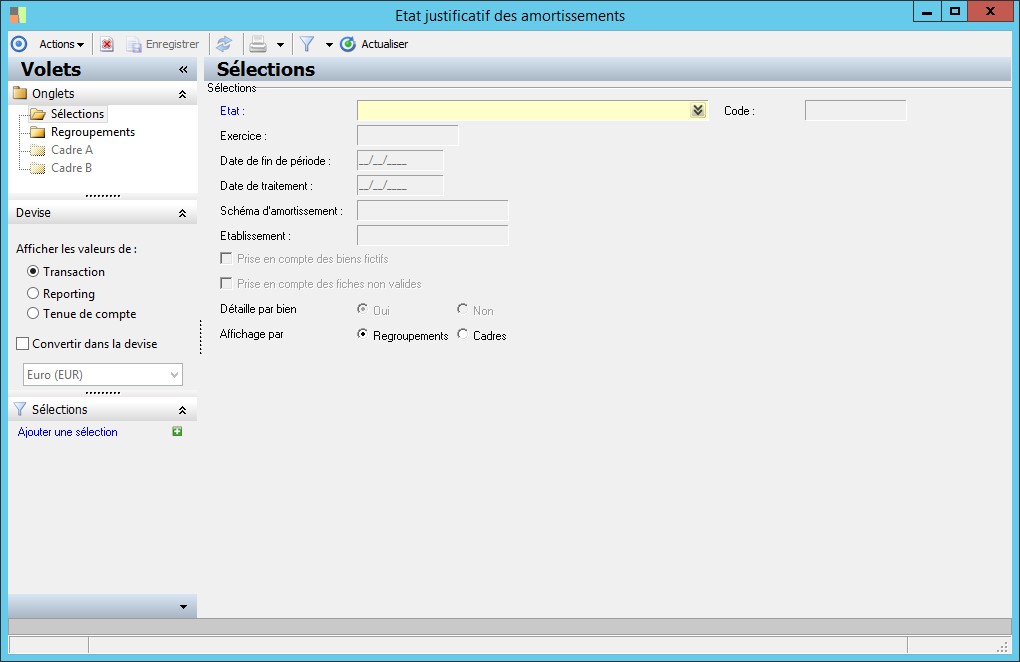 • Renseignez le volet Sélections puis cliquez sur Actualiser .