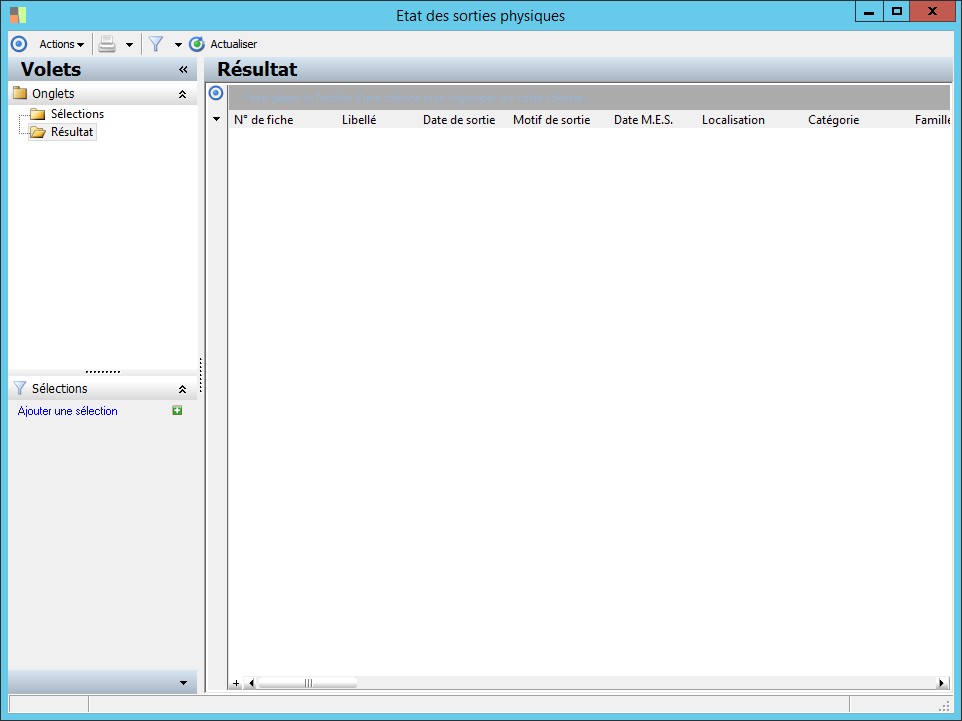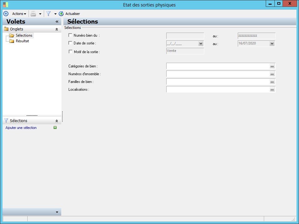 (Sage FRP 1000 Suite Financière) Menu Immobilisations > Suivi physique > Sortie > Etat des sorties physiques
