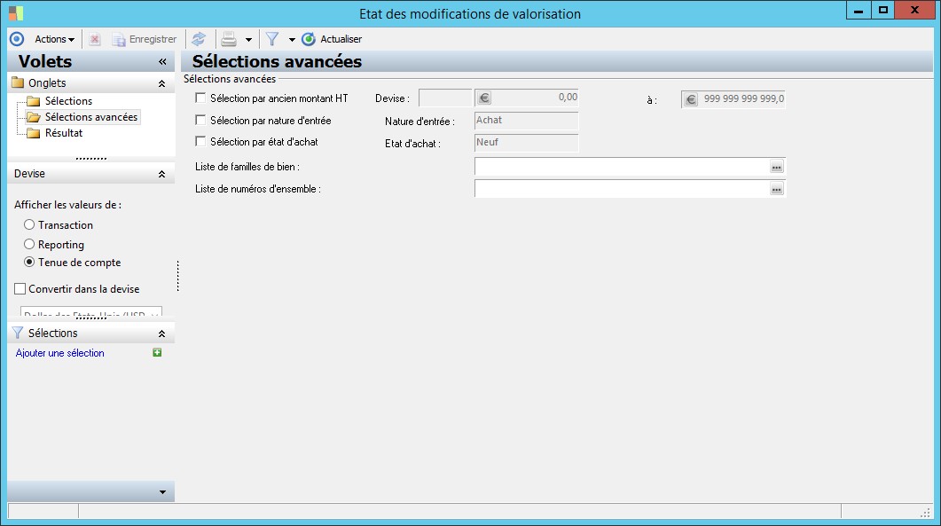 Ce paramètre permet d'effectuer une sélection sur le montant d'acquisition HT avant modificatioon de valorisation (si la case est cochée). |