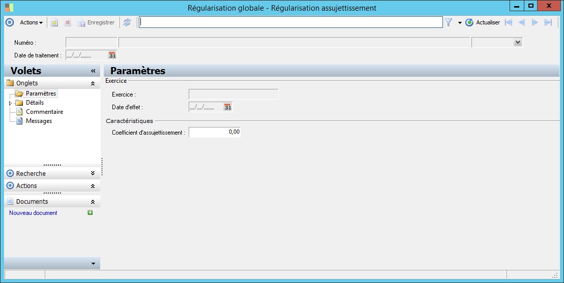 Cette zone permet de saisir le nouveau coefficient d'assujettissement. |