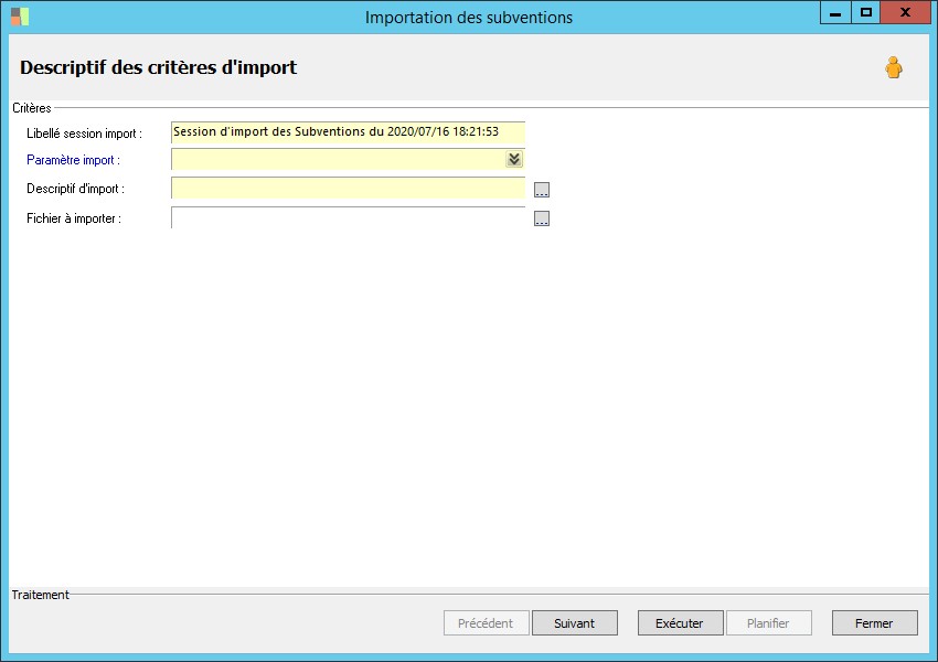 Vous devez sélectionner un paramètre import pour pouvoir procéder au traitement. |