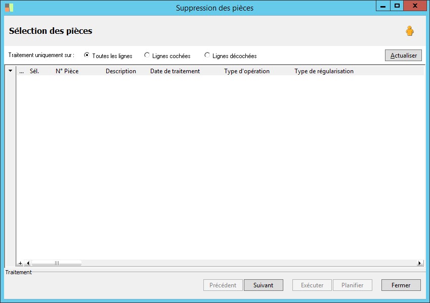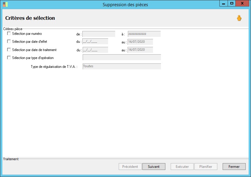 (Sage FRP 1000 Suite Financière) Menu Immobilisations > Suivi comptable > T.V.A. > Suppression des pièces