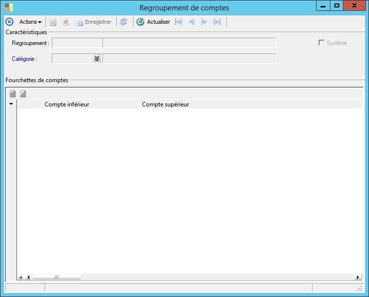 (Sage FRP 1000 Suite Financière) Menu Immobilisations > Fichiers de base > Rubriques > Regroupement de comptes