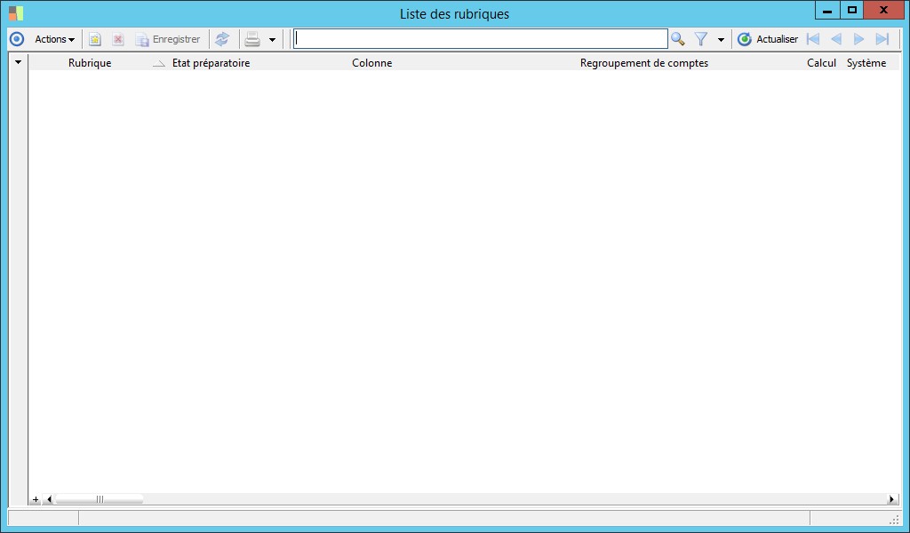 (Sage FRP 1000 Suite Financière) Menu Immobilisations > Fichiers de base > Rubriques > Liste des rubriques
