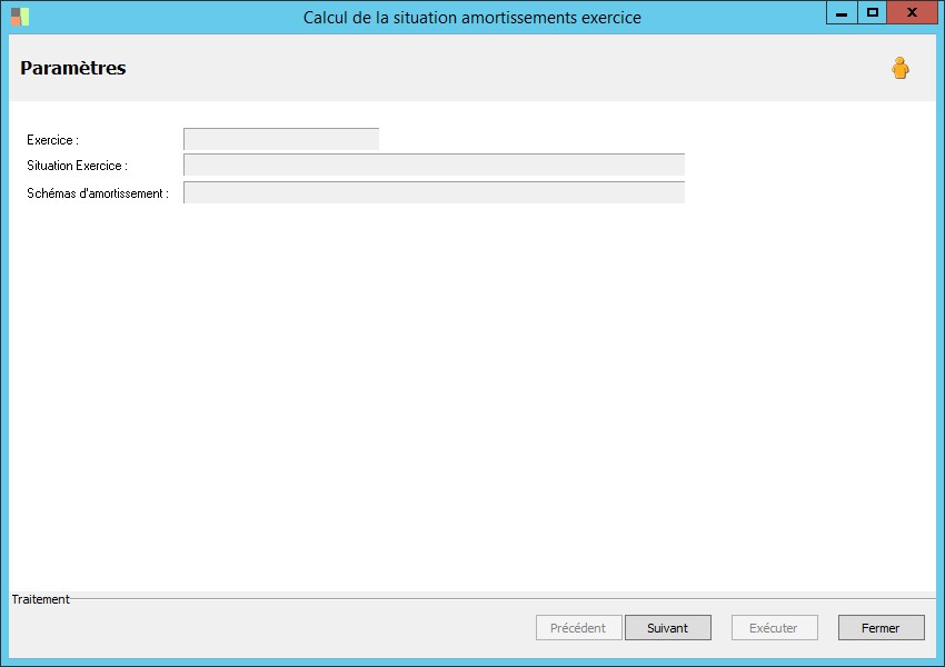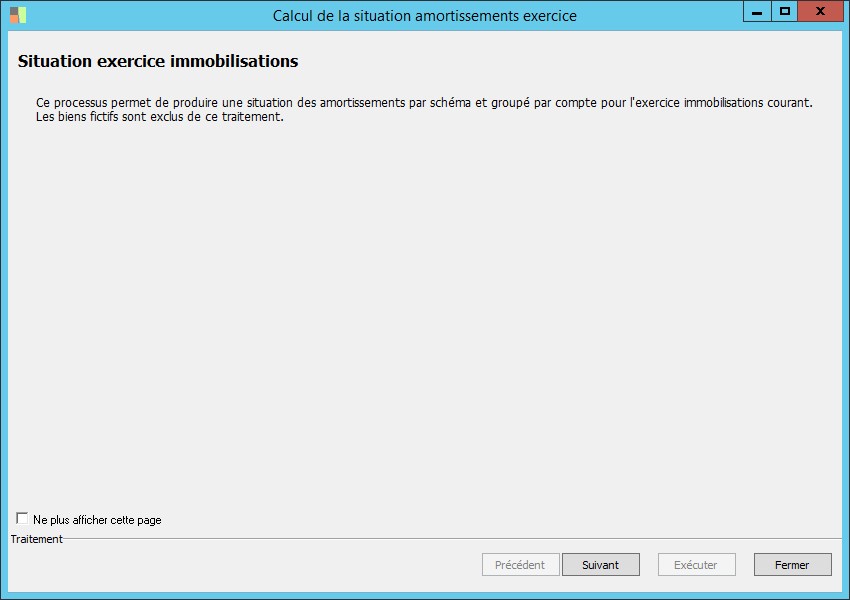 (Sage FRP 1000 Suite Financière) Menu Immobilisations > Restitutions > Calcul de la situation amortissements exercice
