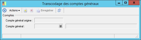 (Sage FRP 1000 Suite Financière) Menu Immobilisations > Initialisation > Import du suivi comptable > Transcodage des comptes généraux