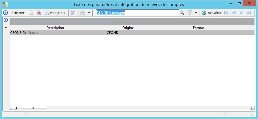 Permet de définir la nature du traitement : CFONB (Générique), Importation ou Intégration (Format d'intégration). |
