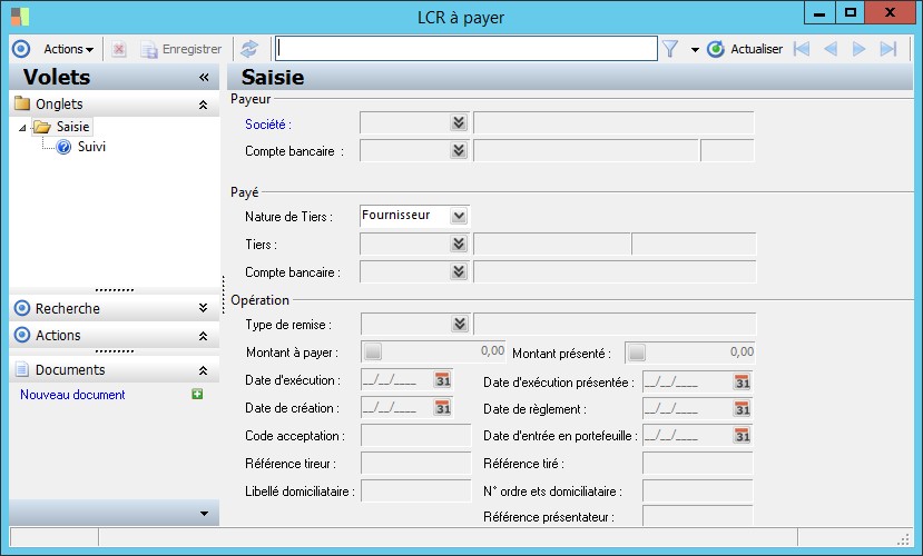 (Sage FRP 1000 Suite Financière) Menu Banque Paiement > Relevés et Notifications > Relevés L.C.R. à payer > LCR à payer