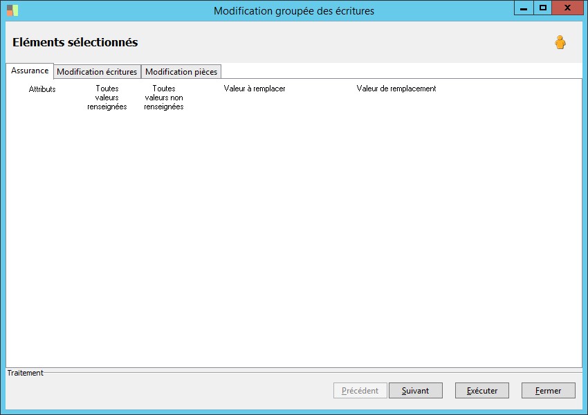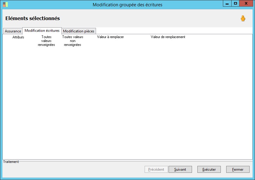 Ce bouton vous permet de passer à l'étape suivante, à savoir la sélection des attributs des écritures à modifier. |