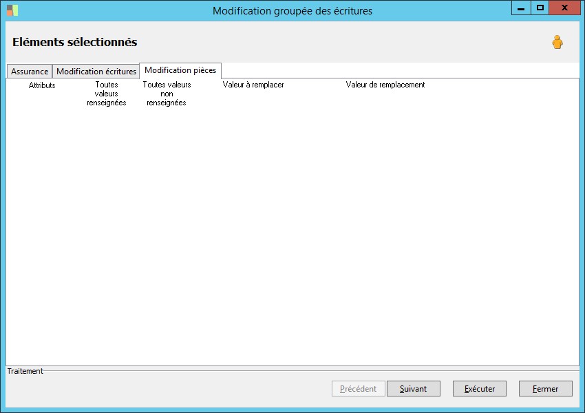 Ce bouton permet l'exécution des modifications sur les attributs des écritures ou des pièces sélectionnées. |