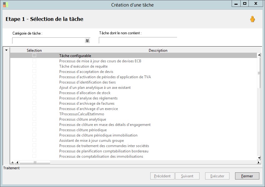 (Sage FRP 1000 Suite Financière) Menu Processus Opérationnels > Outils > Création d'une tâche