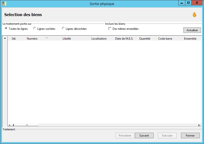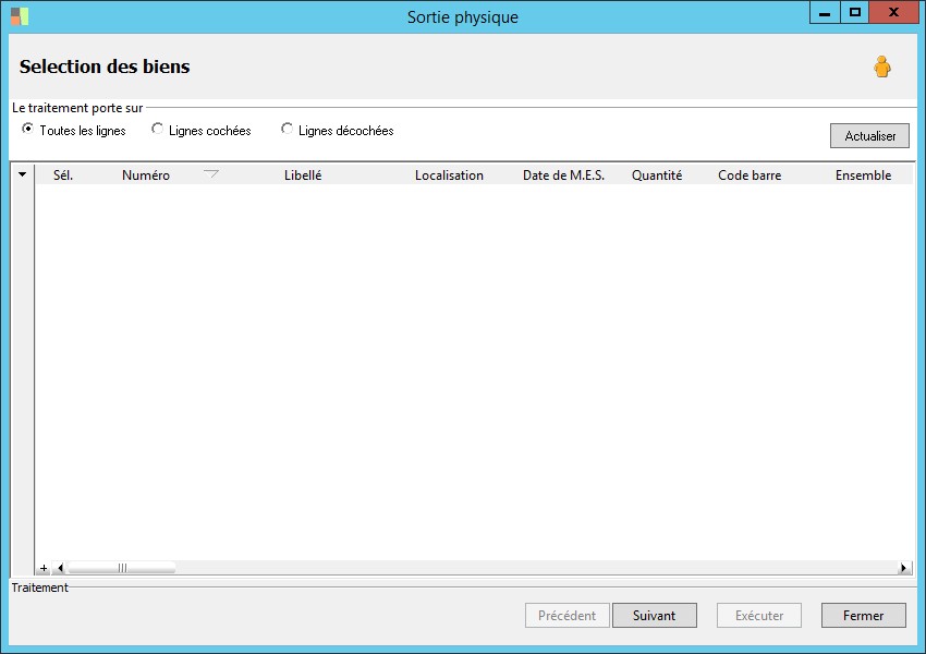 type de traitement : tous, sélectionné, non sélectionné. |