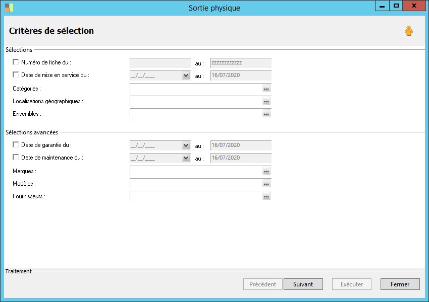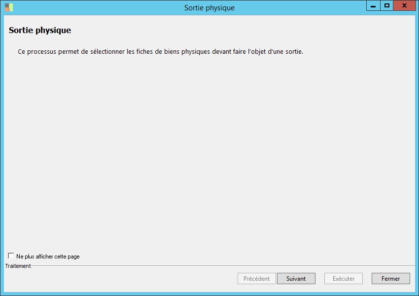 (Sage FRP 1000 Suite Financière) Menu Immobilisations > Suivi physique > Sortie > Sortie physique