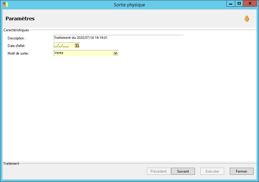 Il s'agit du motif de sorti du bien physique. |
