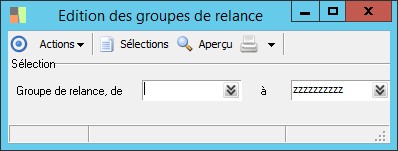 (Sage FRP 1000 Suite Financière) Menu Comptabilité Groupe > Paramètres > Tiers > Edition des groupes de relance