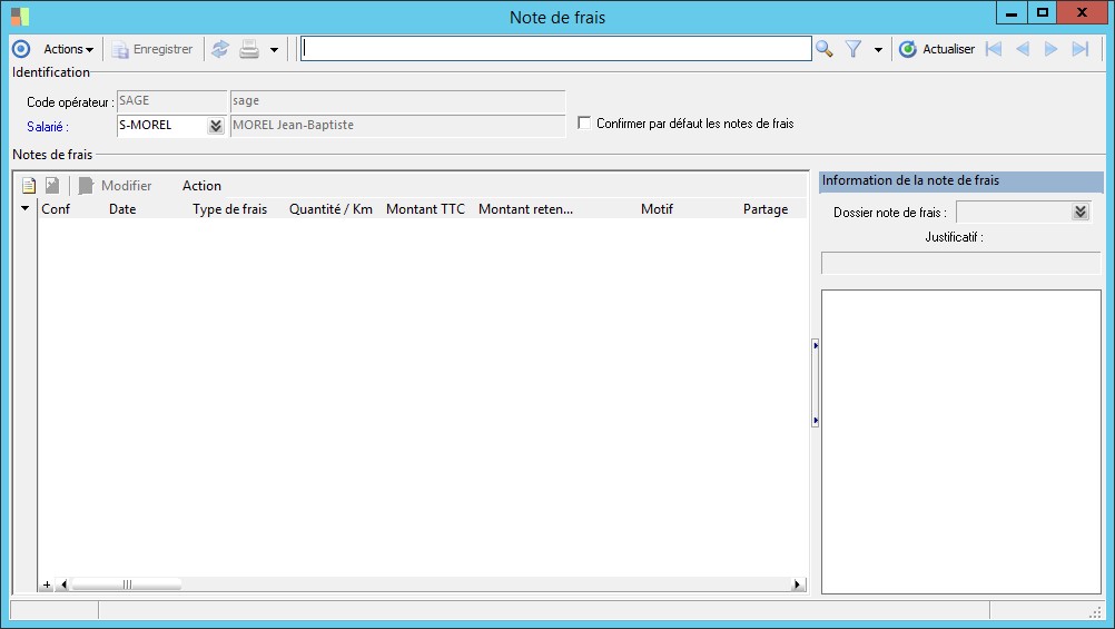 (Sage FRP 1000 Suite Financière) Menu Notes de Frais > Notes de frais > Note de frais