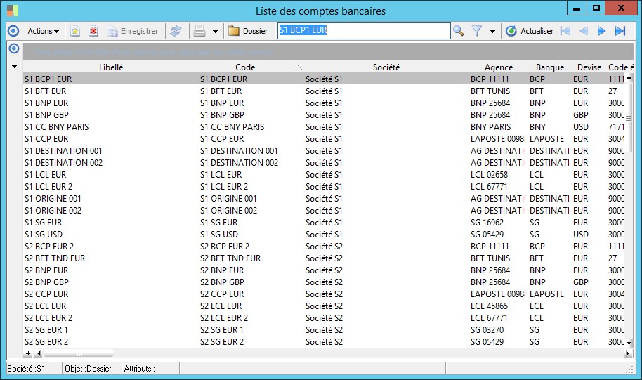 (Sage FRP 1000 Banque Paiement) Menu Banque Paiement > Paramètres > Banques > Liste des comptes bancaires