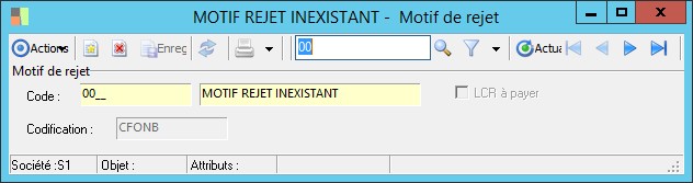 Cet attribut est utilisé uniquement pour filtrer le rejet des ordres de LCR à payer. |