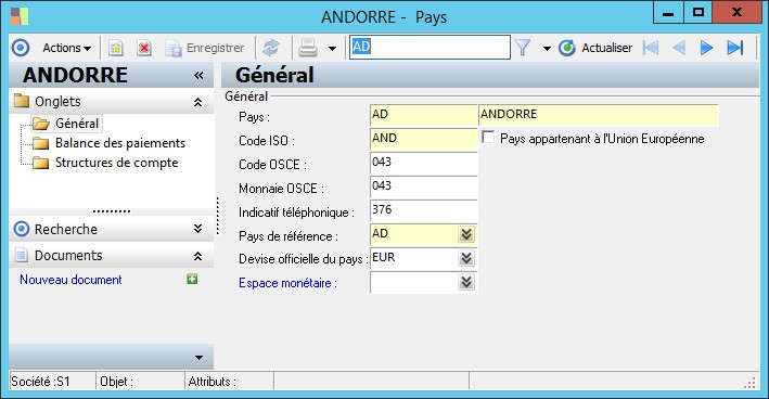 Pays de référence : Cette zone permet de renseigner le code ISO du pays selon la norme en vigueur (code ISO à 3 positions).