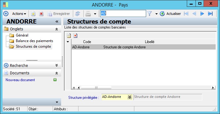 Liste des structures de comptes bancaires |