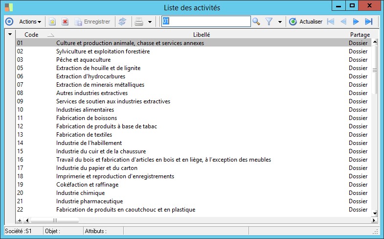 Cette fenêtre affiche la liste des différentes activités des tiers avec lesquels vous êtes en relation. Elle permet de les créer, de les consulter, de les modifier et de les supprimer si nécessaire.