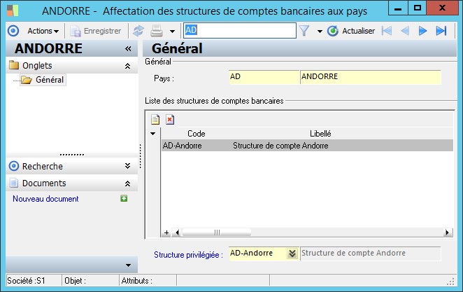 Avant de réaliser toute affectation, il est nécessaire d'avoir paramétré les pays ainsi que les structures de comptes bancaires.