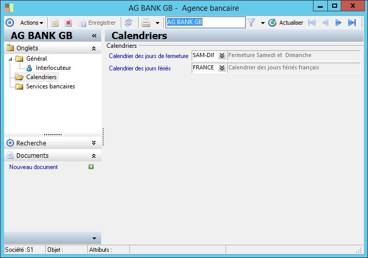 Le calendrier des jours de fermeture indique les jours de la semaine pendant lesquels l'agence est fermée. |