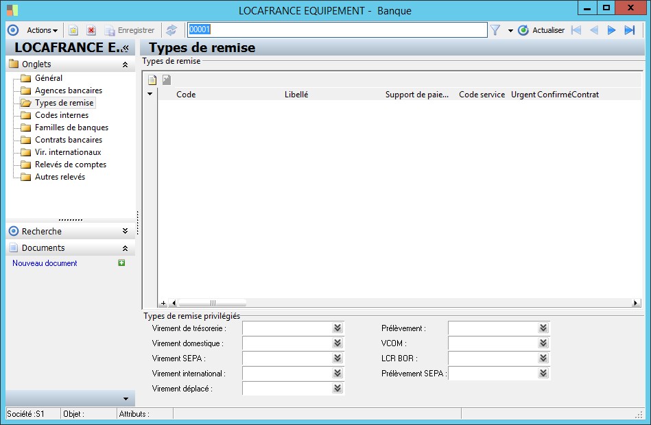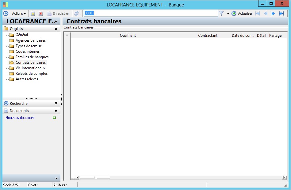Cette classe regroupe les contratsbancaires établis avec les différentes banques des sociétés. |