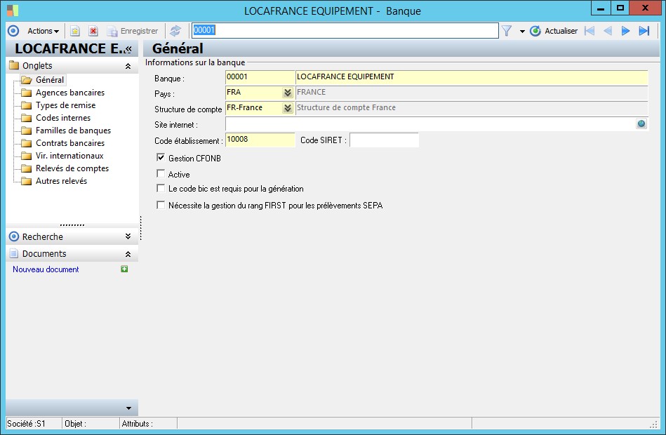 Cocher cette option permet de définir si la banque assure une gestion CFONB en émission et en réception. |