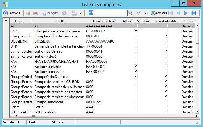 (Sage FRP 1000 Banque Paiement) Menu Banque Paiement > Paramètres > Compteurs > Liste des compteurs