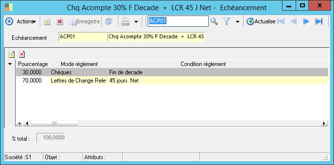 Le pourcentage permet d'éclater en une ou plusieurs échéances le règlement d'une facture.