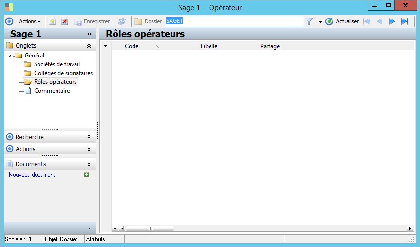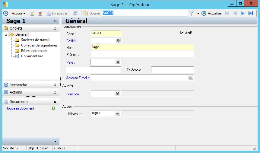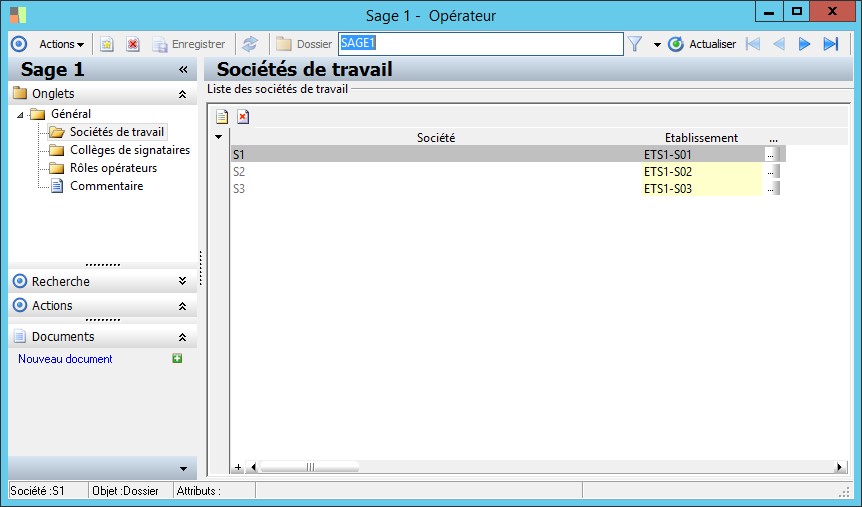 (Sage FRP 1000 Banque Paiement) Menu Banque Paiement > Paramètres > Sociétés > Opérateur