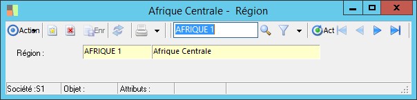La fenêtre de saisie des régions permet d'enregistrer le code ainsi que la désignation des régions mentionnées dans les fiches tiers.
